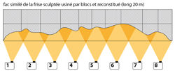 La frise originale est encore en place sur la falaise mais fermée au public pour des raisons de conservation.Elle a été scannée en 3 dimensions pour permettre son usinage numérique en vraie grandeur. Un dispositif multimédia composé de huit vidéo projecteurs synchronisés explore ainsi sur 20 mètres de long le fac-simile de la frise en le faisant «parler» aux yeux et à l’intellect du visiteur contemporain.